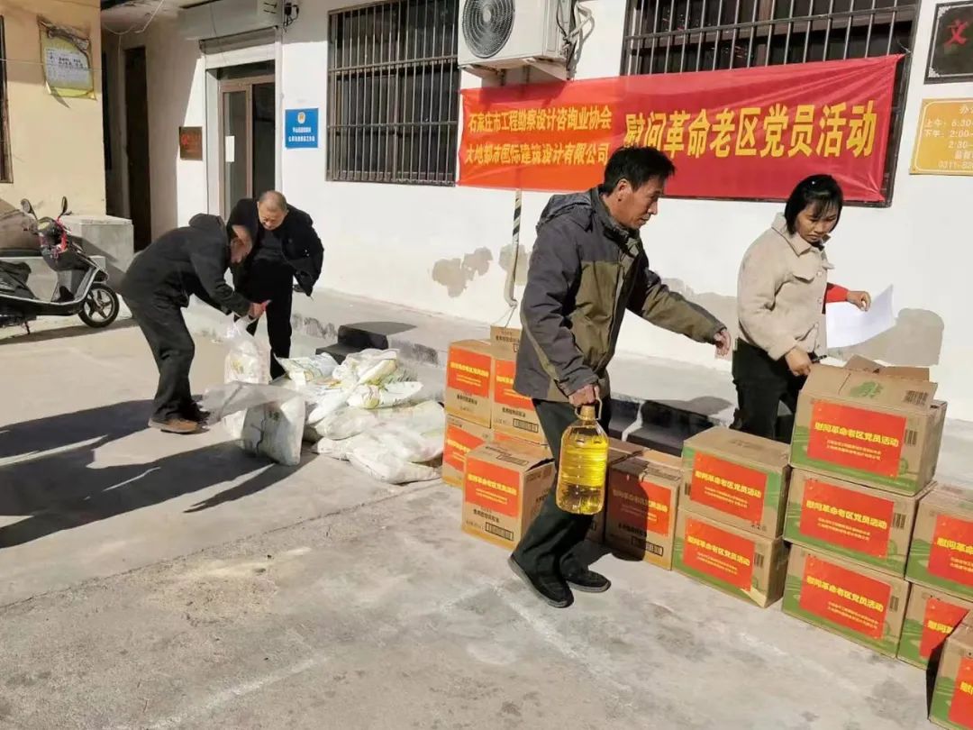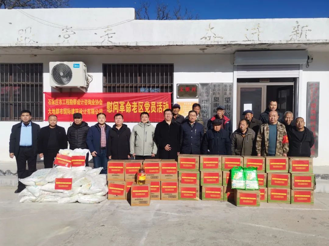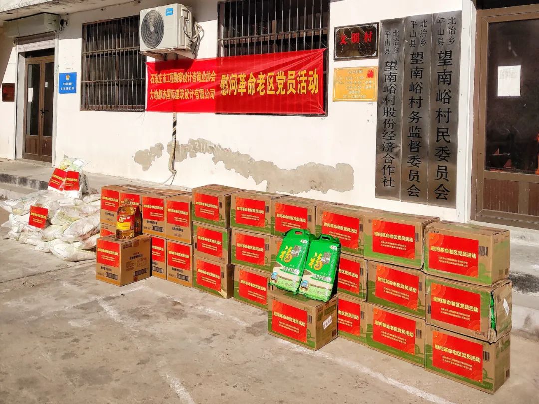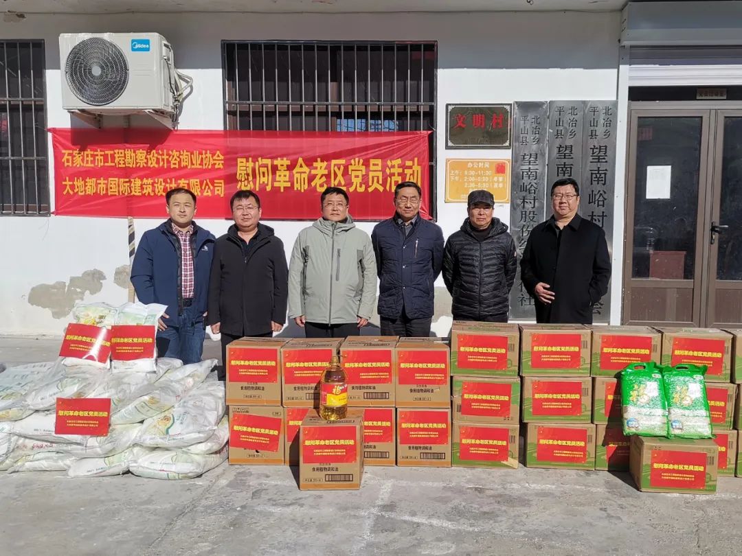 活动由石家庄市工程勘察设计咨询业协会主办,大地都市国际建筑设计有限公司承办。寒冬已至,气温骤降,11月16日石家庄市工程勘察设计咨询业协会副会长兼秘书长陈国浩、副秘书长范兰海,中土国际科技集团有限公司副总李会永,大地都市国际建筑设计有限公司院长司军、副院长赵福春、院长助理黄小峰一行来到平山县北冶乡望南峪村“走亲”慰问,送温暖、送物资、送关爱,为革命老区党员送去米、面、油等慰问品,用实际行动让温暖在寒冬中传递。