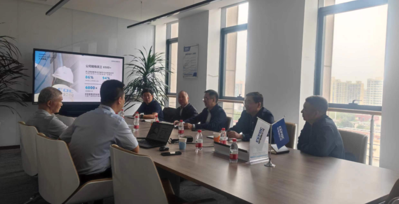 2024年4月19日上午,石家庄市工程勘察设计咨询业协会会长湛峰、协会副会长兼秘书长陈国浩一行到中国电子系统工程第四建设有限公司调研并座谈交流。