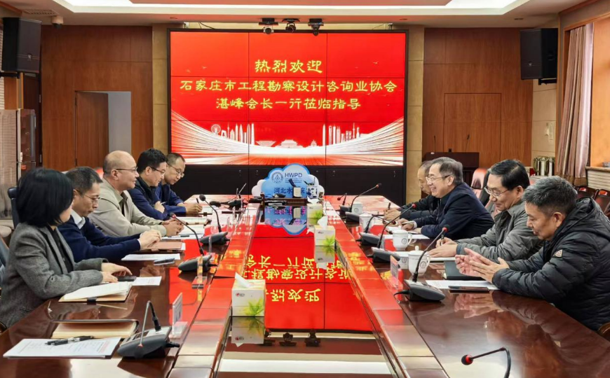 2024年11月25日上午,石家庄市工程勘察设计咨询业协会湛峰会长、陈国浩副会长(兼秘书长)一行到河北省水利规划设计研究院有限公司调研,公司党委书记、董事长马述江、副总经理郭克宁、总工耿运生等陪同并座谈交流。