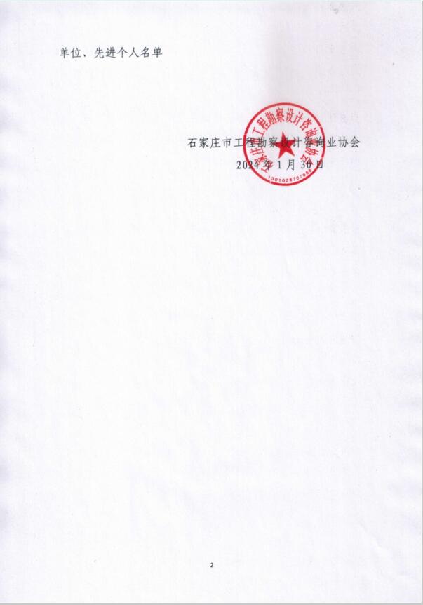2023年度石家庄市工程勘察设计造价咨询行业先进单位、先进个人名单